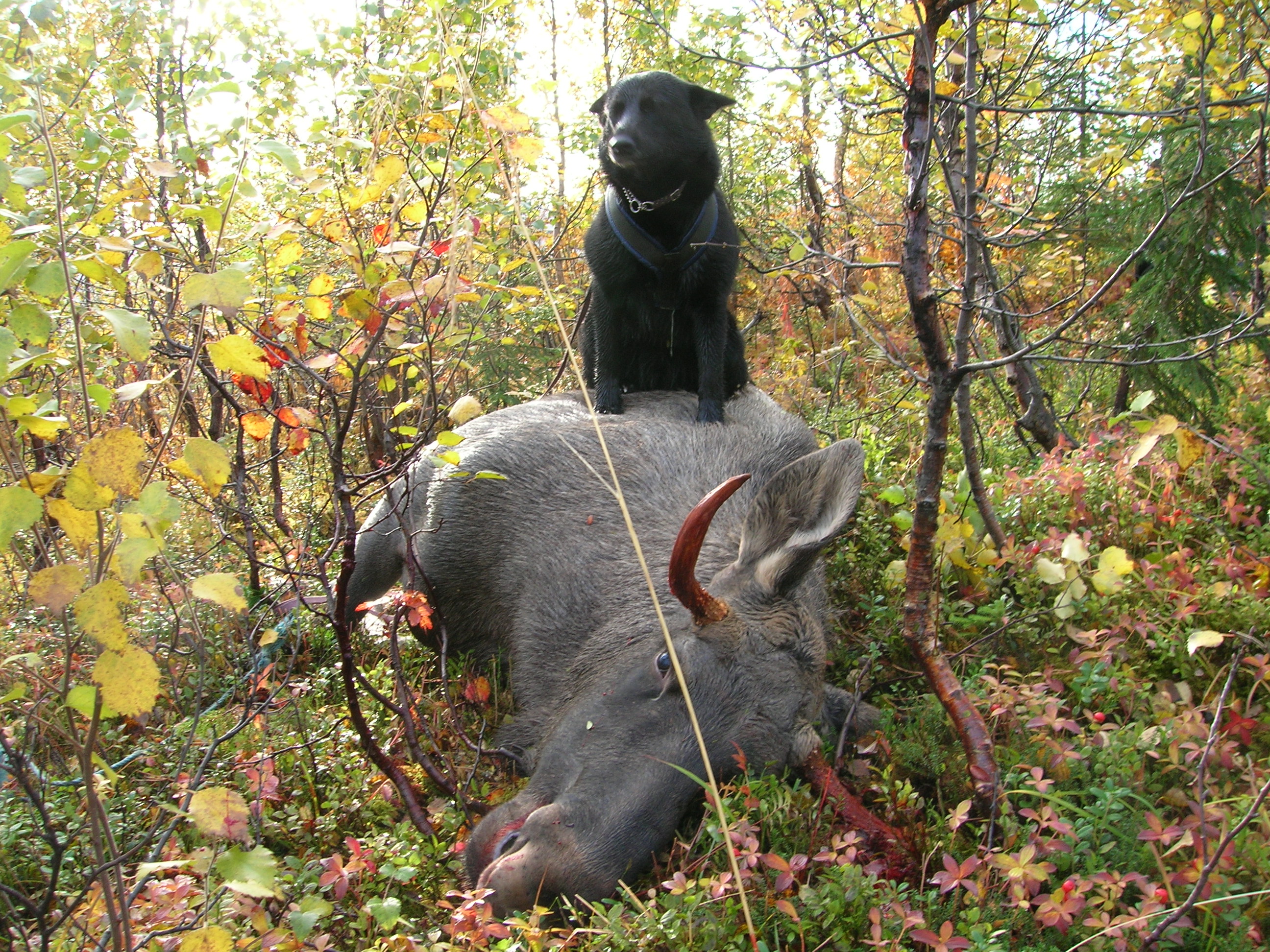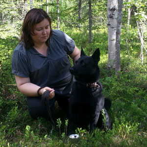 Ingela, älgjägare och ägare av Dalomvikens Sorbus och Skinnfjellets Salix. Sorbus född -08 är svensk och norsk jaktchampion, svensk och norsk viltspårchampion och svensk utställningschampion. Salix är född -14. Den första svarta älghunden köpte Ingela 1995.